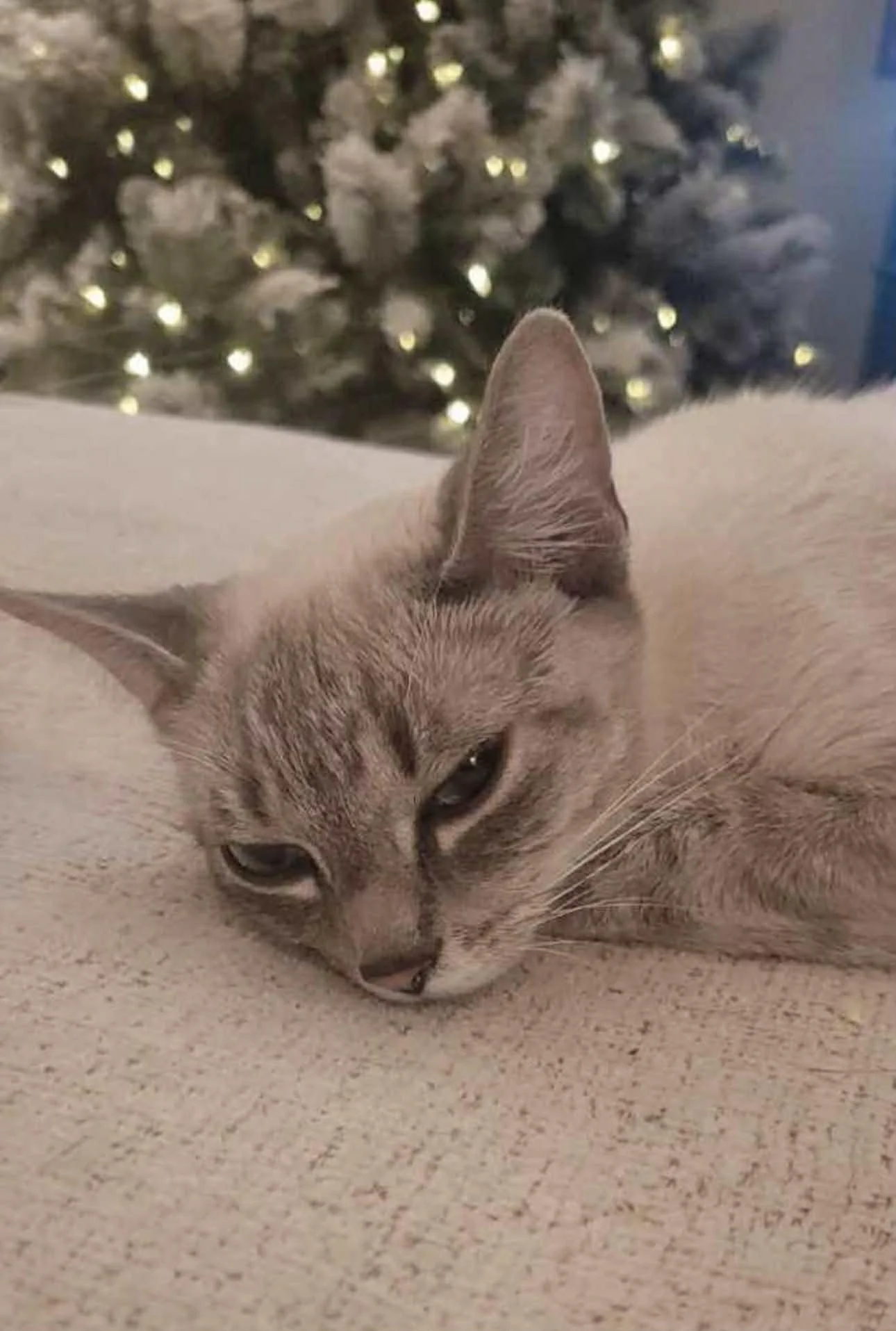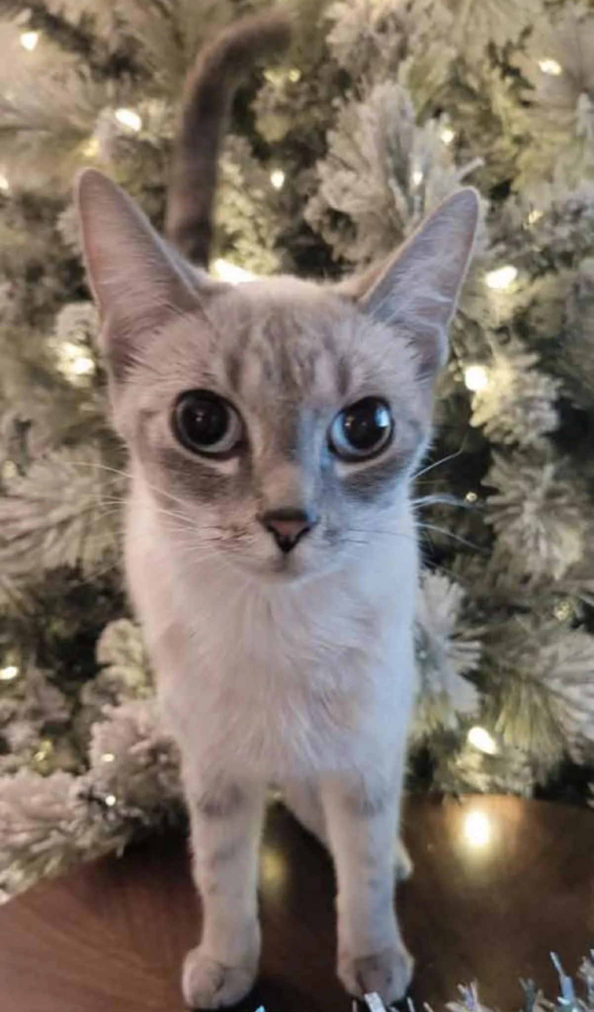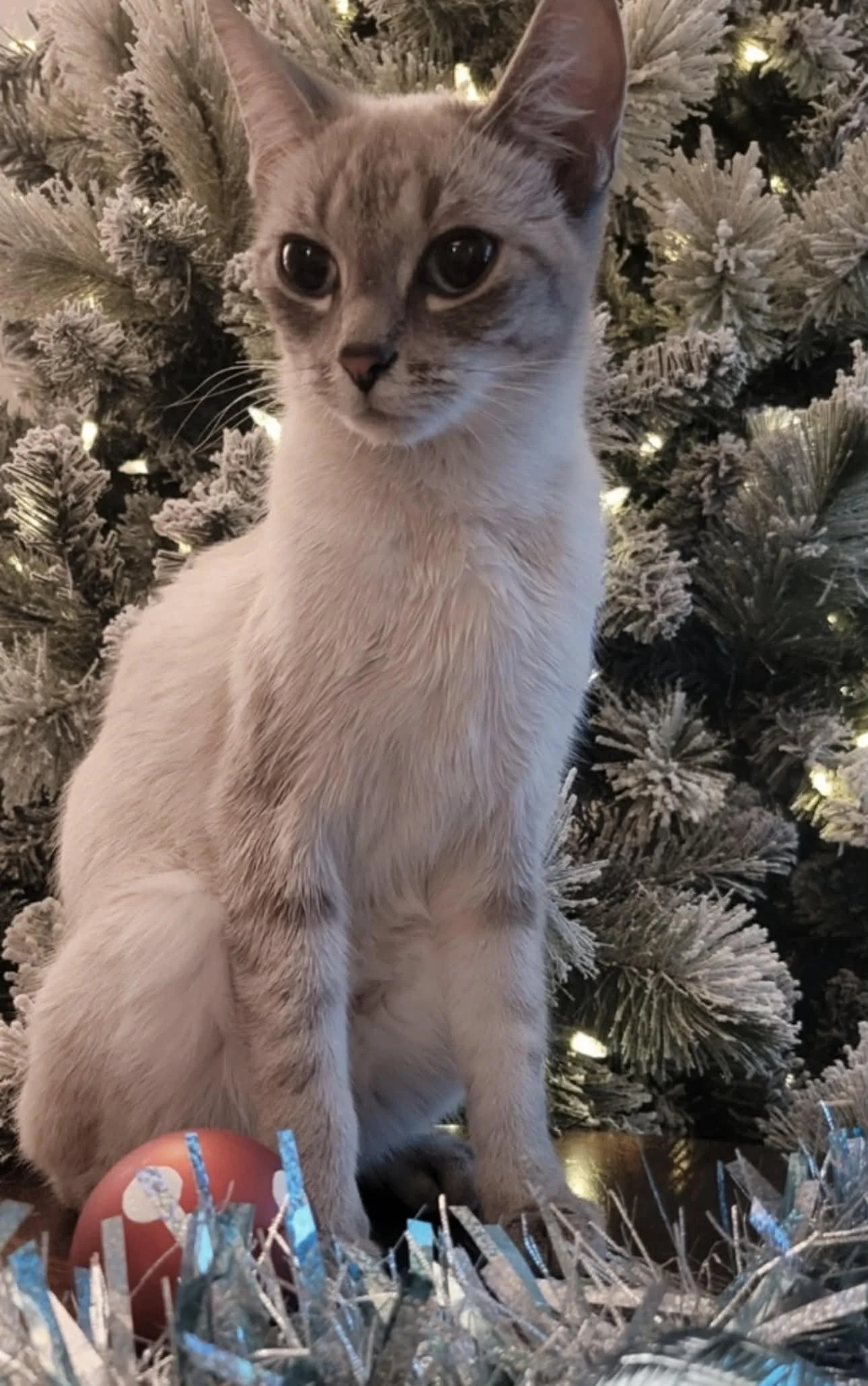 Azure has made friends with the resident dog, greeting him with friendly head bumps and rubs. She’s a loving, social companion who will fill your home with warmth, purrs, and plenty of chatter.