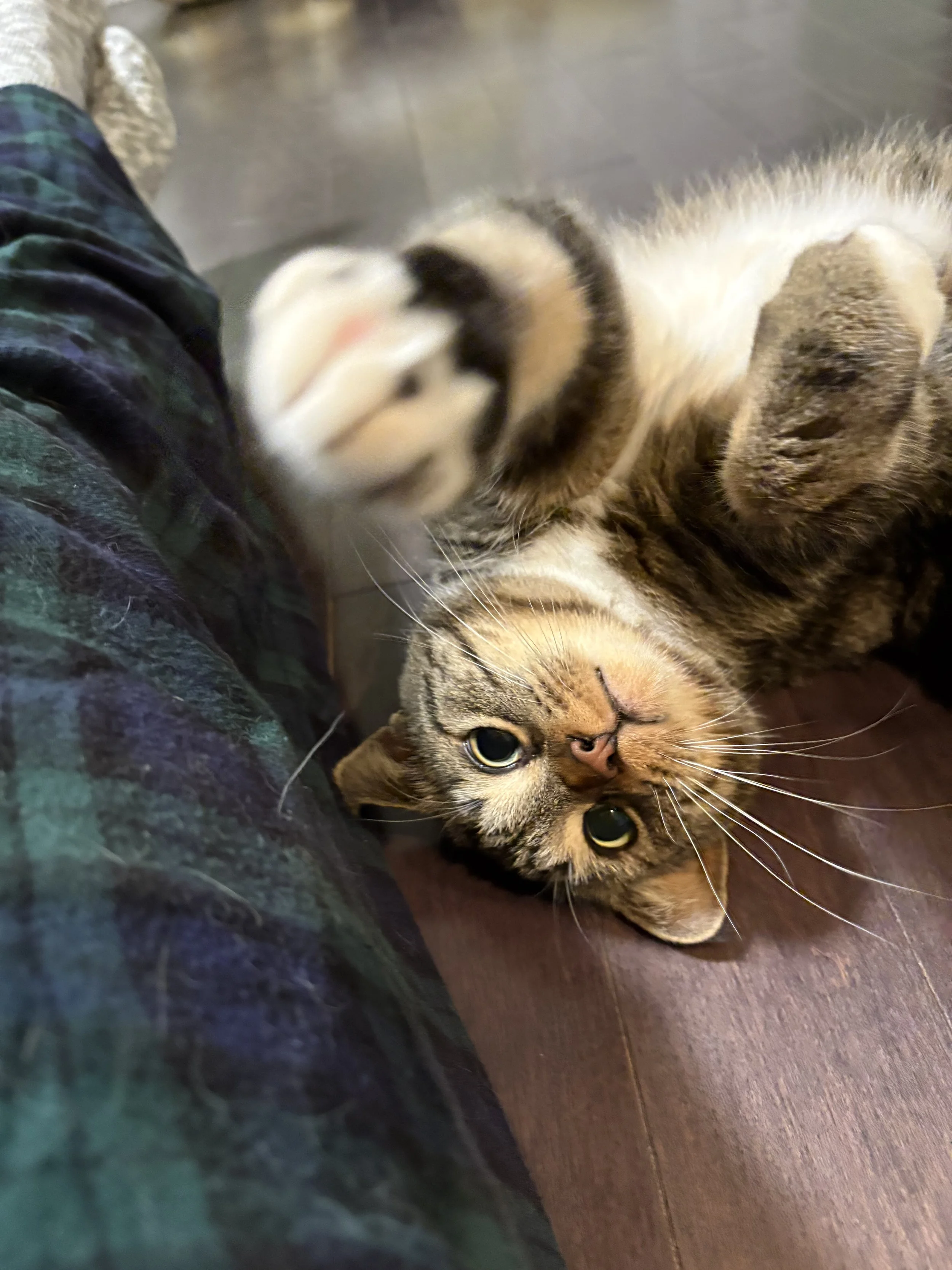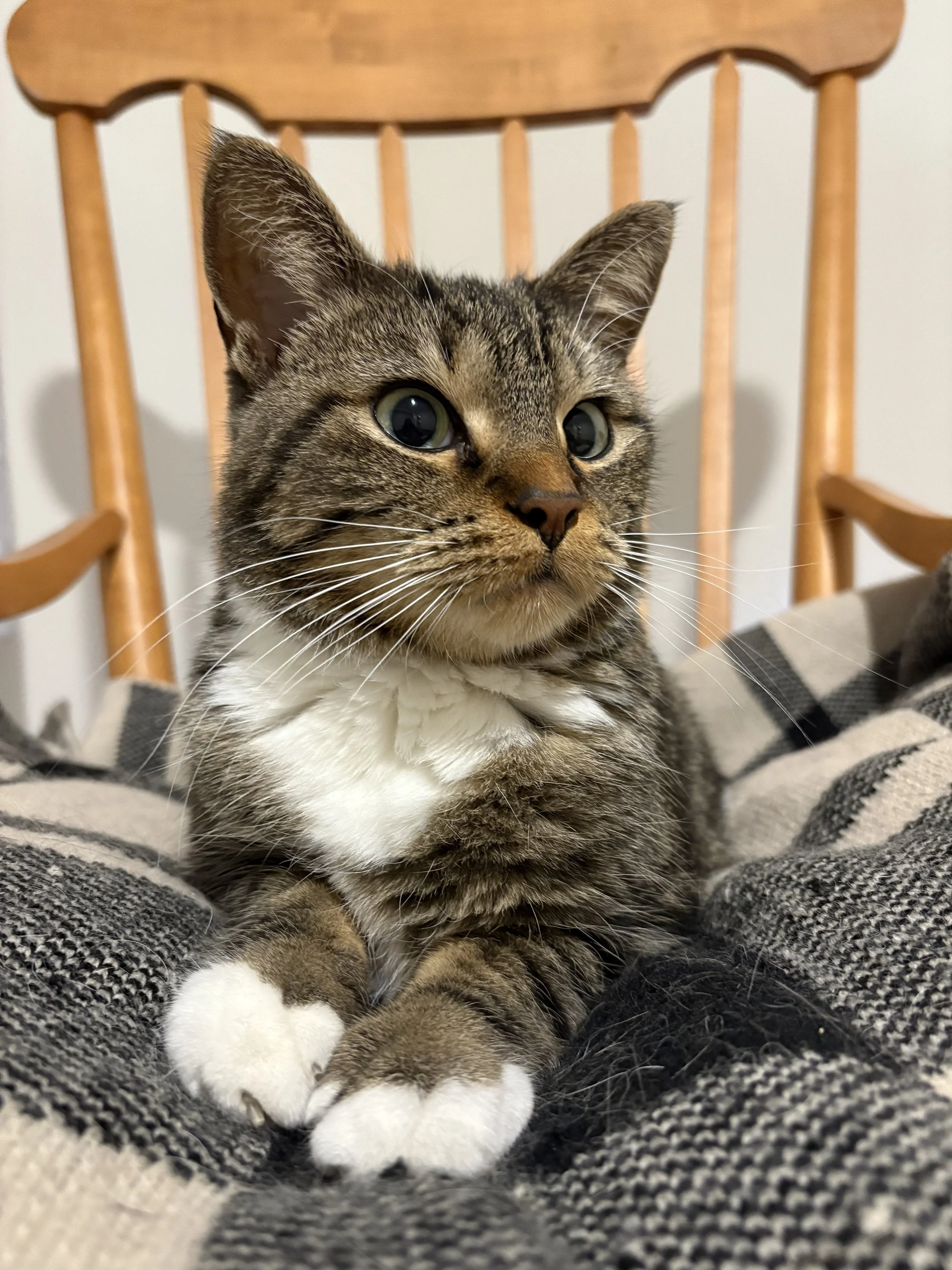 Carrie Bradclaw is a sweet, affectionate girl. Having lived in a shelter in The Pas her whole life (almost 4 years!), she is timid and cautious with new environments at first. However, her desire to be loved wins out fast, and she quickly becomes the cuddliest lap cat with the loveliest gentle purr. She also does the most adorable little somersault flops when she wants more scritches.