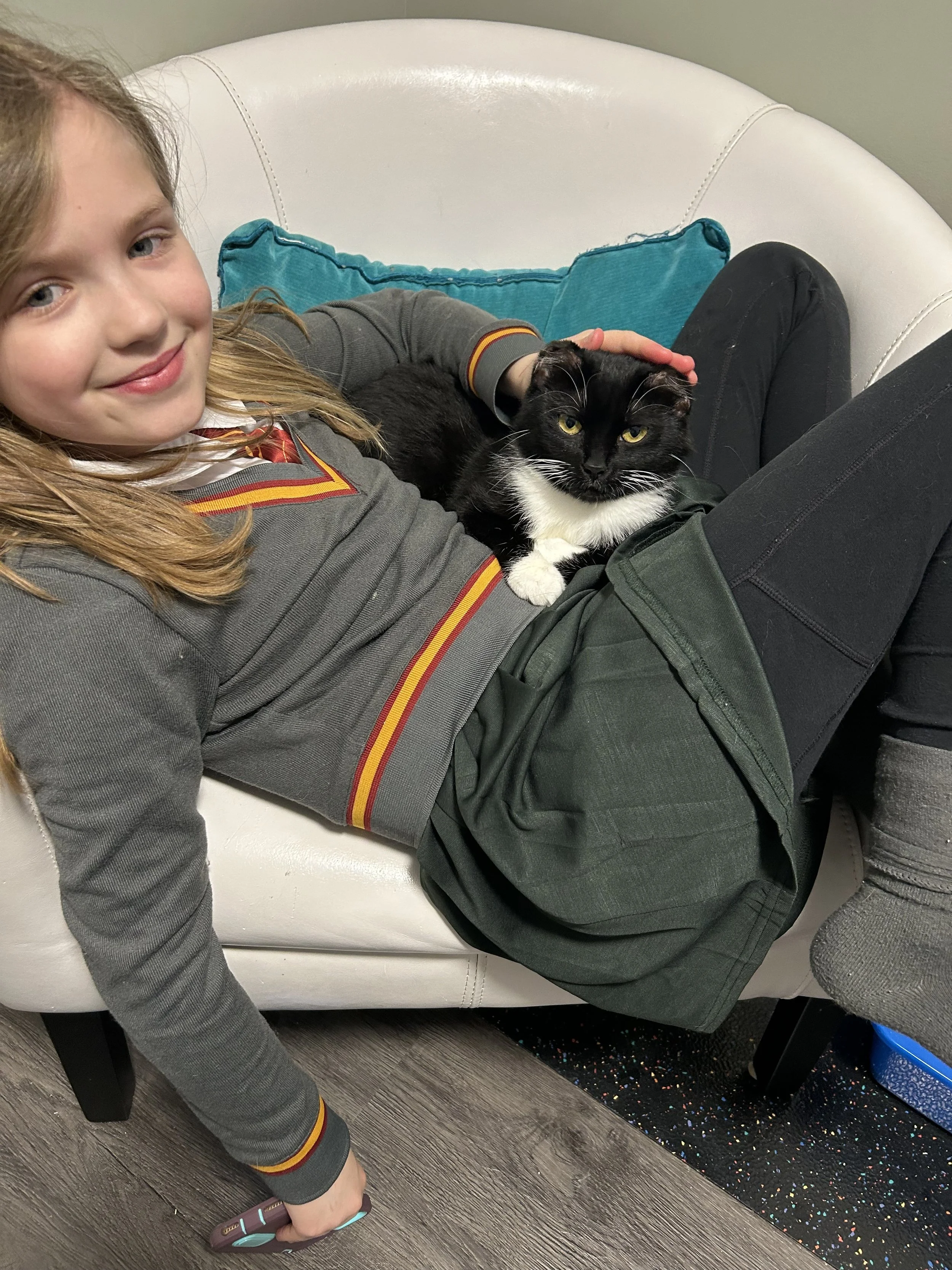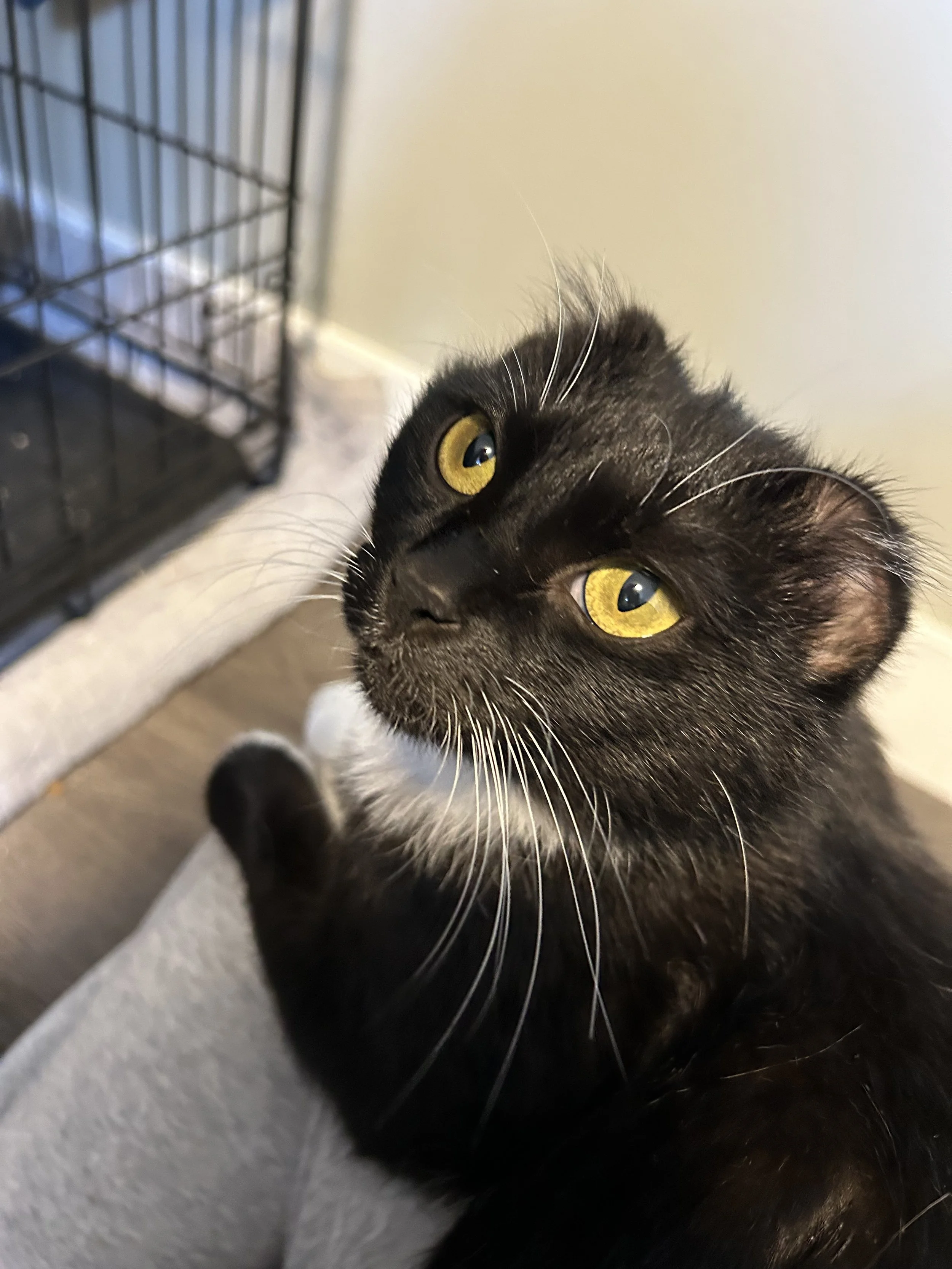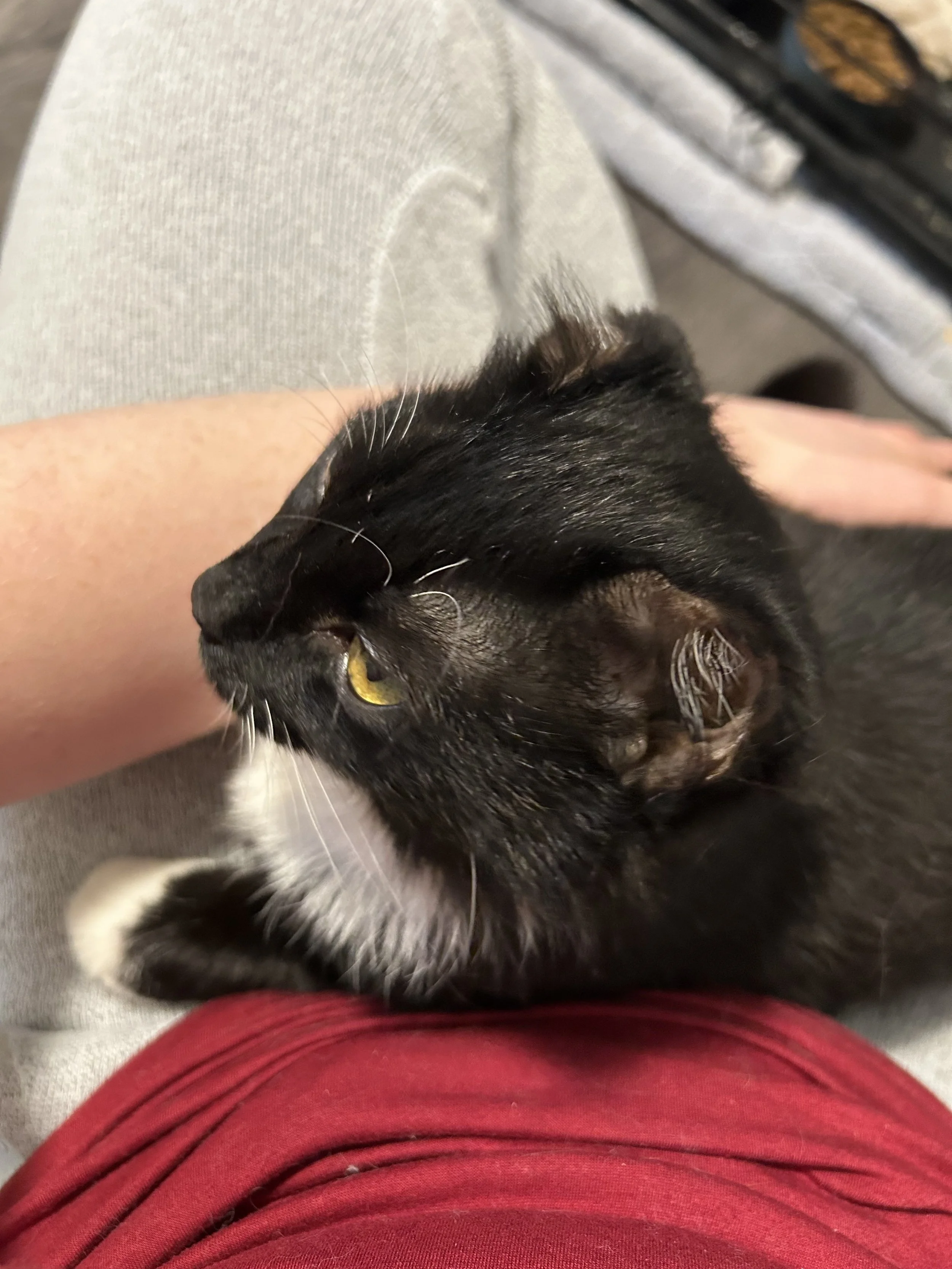 Miss Lily has raised her babies and now she’s ready for a home. She resembles a badger because her poor little ears fell off from frostbite. She’s vocal and constantly is telling you she wants to cuddle. She would love a lap to curl up on. She’s very sweet and loves her people.