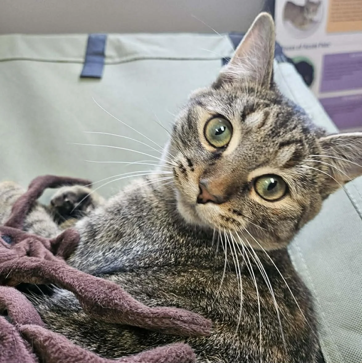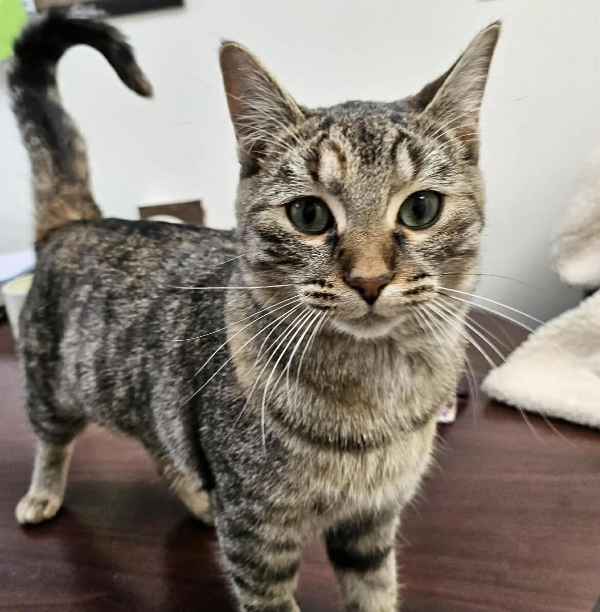 Meadow is a sweet kitten like cat with a heart as soft as her fur. She’s irresistibly friendly, greeting everyone with bright eyes and a gentle purr the moment they walk into the room. Cuddles are her love language—she happily curls up in any available lap, soaking up affection like sunshine. Meadow is wonderfully needy in the most endearing way, following her favorite people around and reminding them with tiny mews that she’s ready for more attention. Playful, loving, and full of charm, Meadow brings warmth and joy to every moment, making her the perfect companion for anyone who loves constant kitten affection.