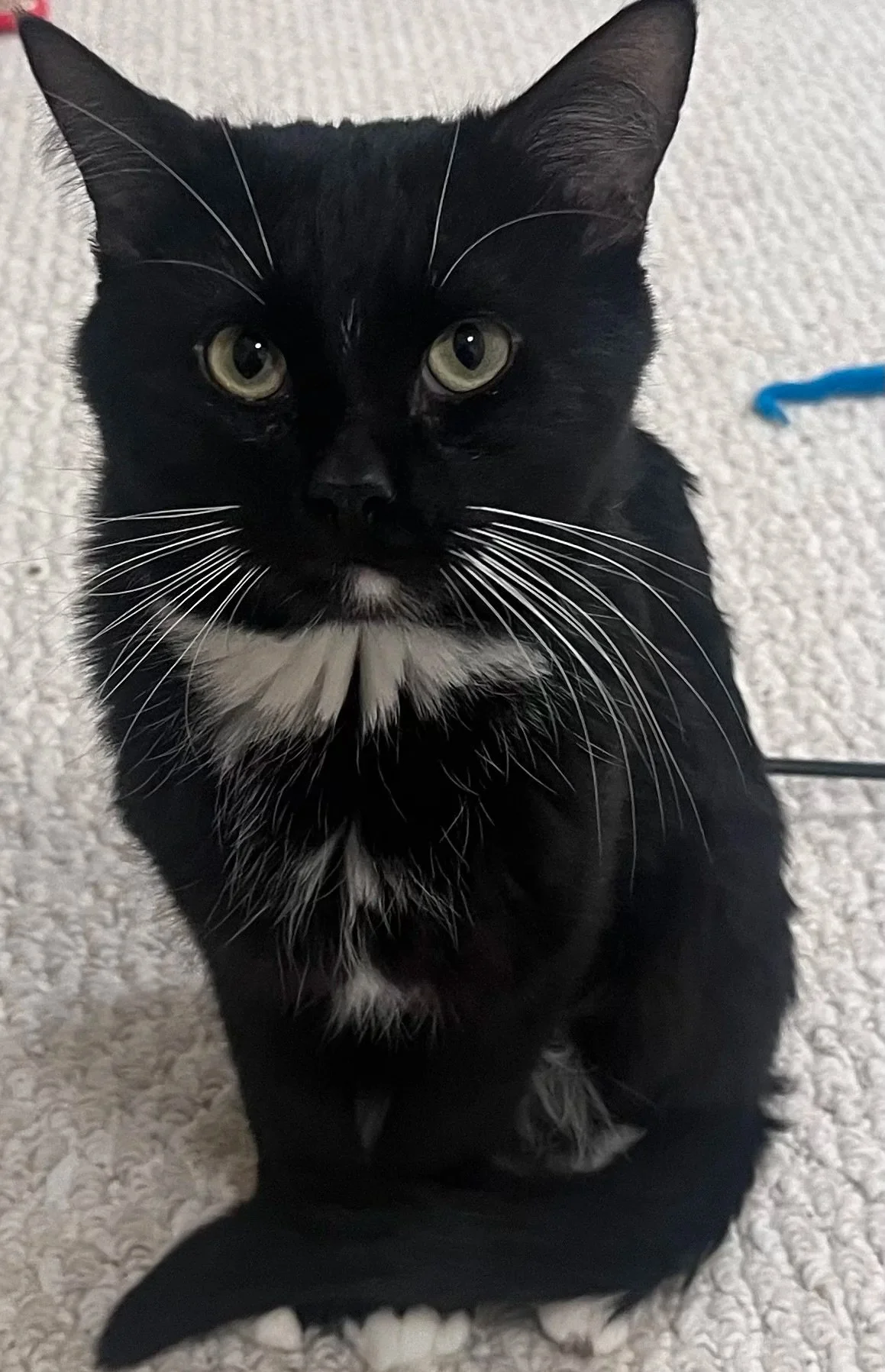 Oscar is a sleek tuxedo cat who can melt into the shadows like a little black void—especially when he’s deciding whether it’s time to observe or to play. Independent by nature, Oscar takes his time feeling safe, but once he does, his sweet personality shines. He loves playtime and is known for his adorable, fox-like pounces when the moment is just right.