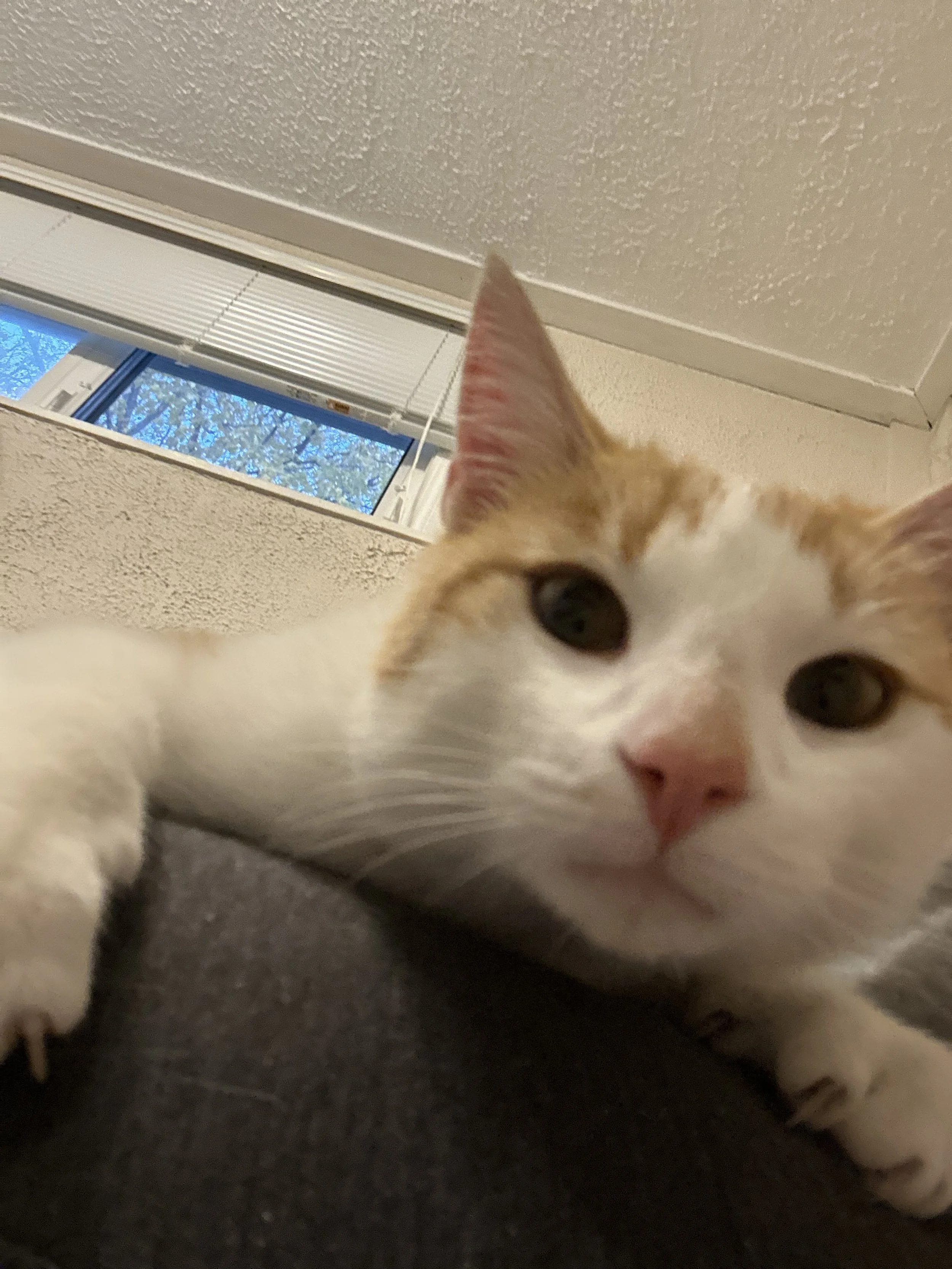 Hi there! I’m Reggie — a lively, playful cat bursting with energy. I have a mischievous side and sometimes nibble on ears or get curious about eyeglasses, but I’m learning those aren’t the best choices. If you’re looking for a fun-loving companion, I’d love to join your family!