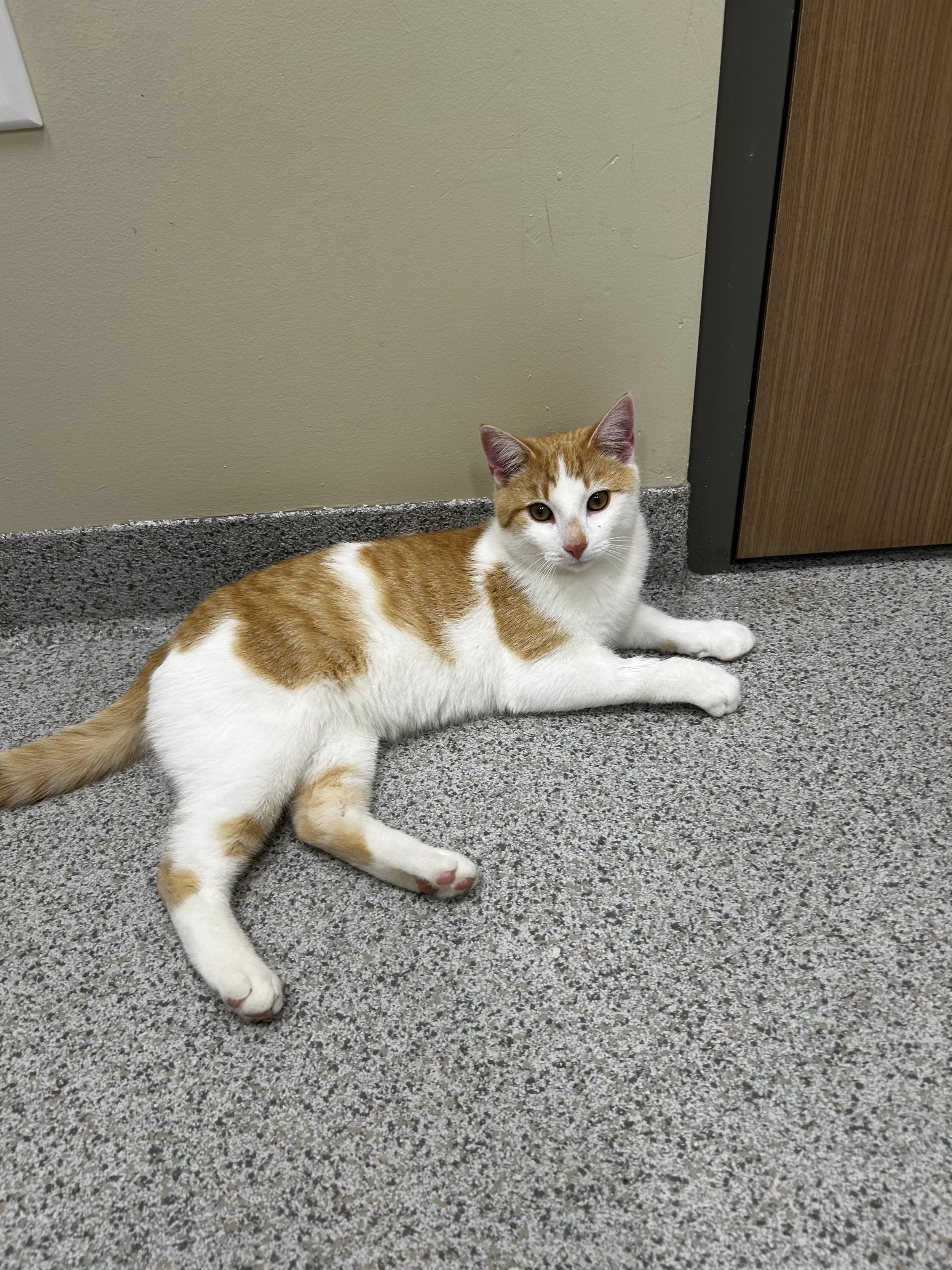 Reggie is a 7-month-old orange and white sweetheart with a heart as bright as his fur. Playful, curious, and endlessly affectionate, he’s the perfect mix of kitten energy and gentle snuggles. Whether he’s chasing his favorite toy, perching by the window to watch the world, or curling up beside you for a nap, Reggie brings joy wherever he goes. He loves people, other cats and warms up quickly, and is always ready to make new friends. Reggie would thrive in a home where he can explore, play, and be part of the family’s daily fun. He’s also a charming little chatterbox, happily greeting you with soft meows and purrs. If you’re looking for a loving companion with a big personality and even bigger heart, Reggie is ready to brighten your life. Come meet this adorable boy — he might just be the perfect match you’ve been waiting for!