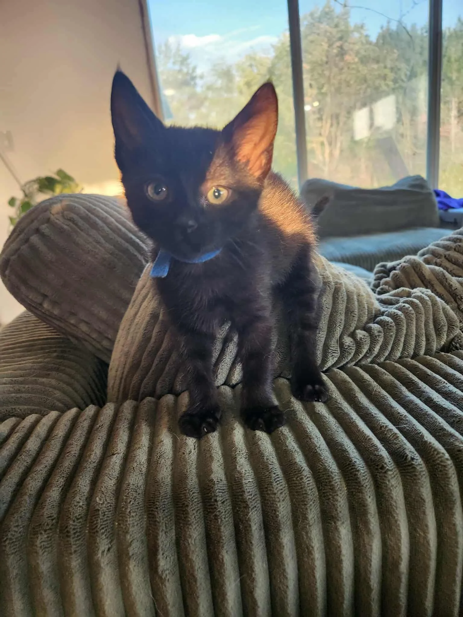 Waffle never holds still and is super playful but also a motor boat purr boy.